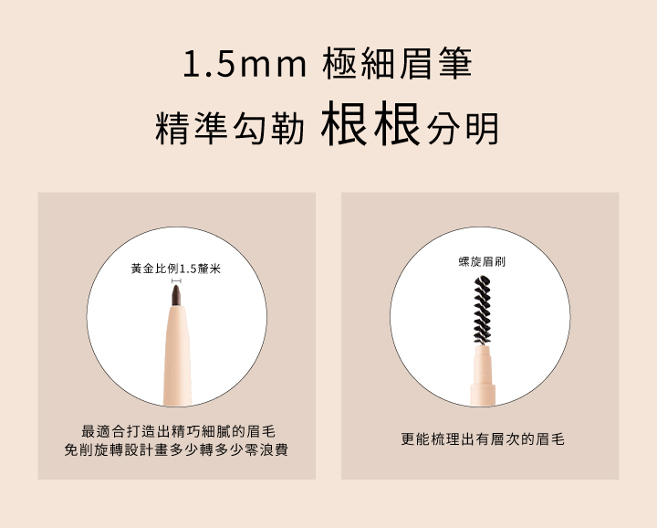 ◼︎ 1.5mm極細眉筆,精準勾勒根根分明
