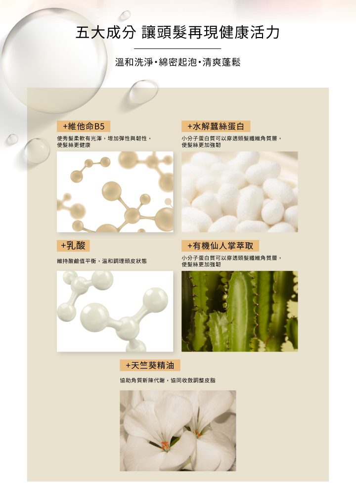 ◼︎ 五大成分,讓頭髮再現健康活力